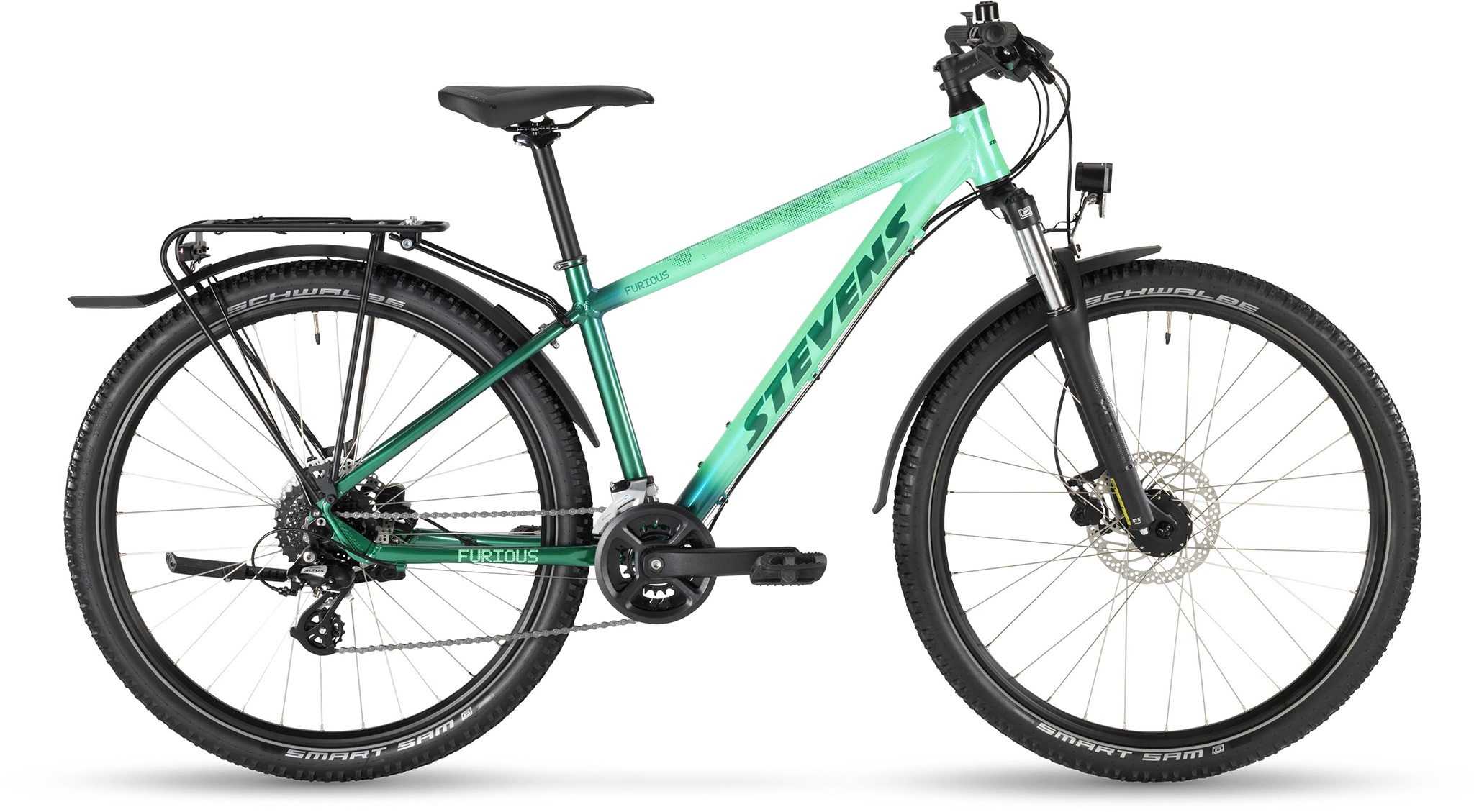 Mit Federgabel, Shimano Schaltung und Scheibenbremsen. Für den Alltag gerüstet mit Schutzblechen und LED Licht über den Nabendynamo. Versionen mit oder ohne Gepäckträger und in verschiedenen Farben direkt an Lager.